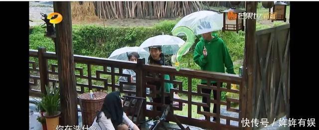 《向往的生活》里,她担心妹妹们着凉,催她们去换衣服,她自己留在外面帮大家洗脏雨衣